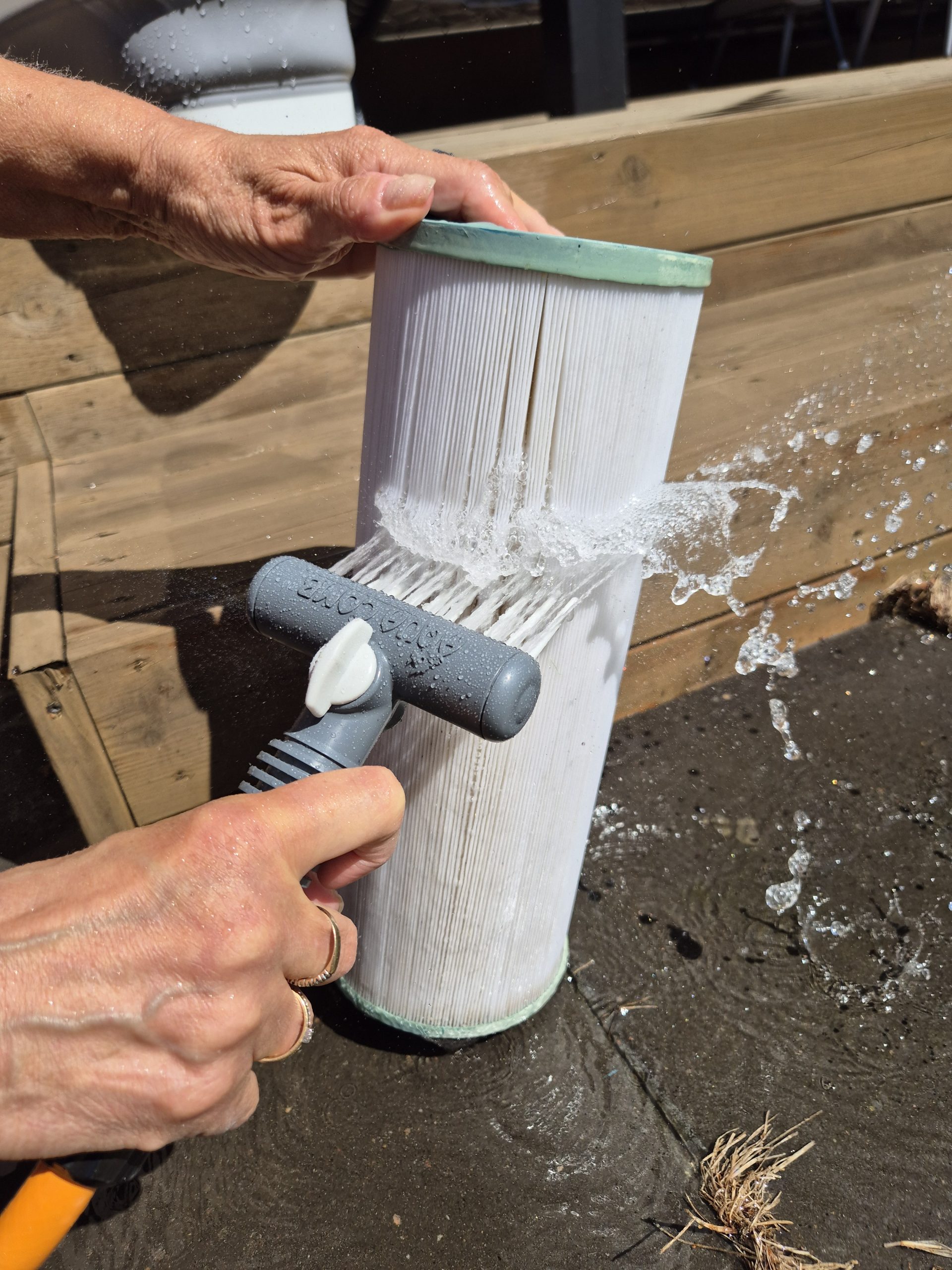 Suodattimen puhdistukseen suositellaan käyttämään suodattimenpesuainetta, joka tuhoaa bioaineet ja irrottaa tehokkaasti kalkin, rasvan ja muut epäpuhtaudet. Pelkkä vesisuihku ei riitä poistamaan kaikkia kertymiä, sillä monet epäpuhtaudet tarttuvat tiukasti suodattimen pintaan ja vaativat kemiallista käsittelyä irrotakseen.